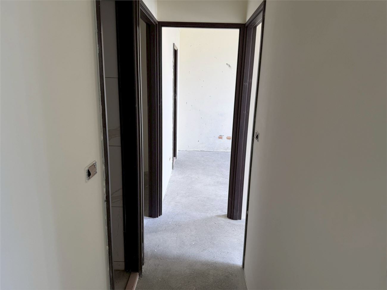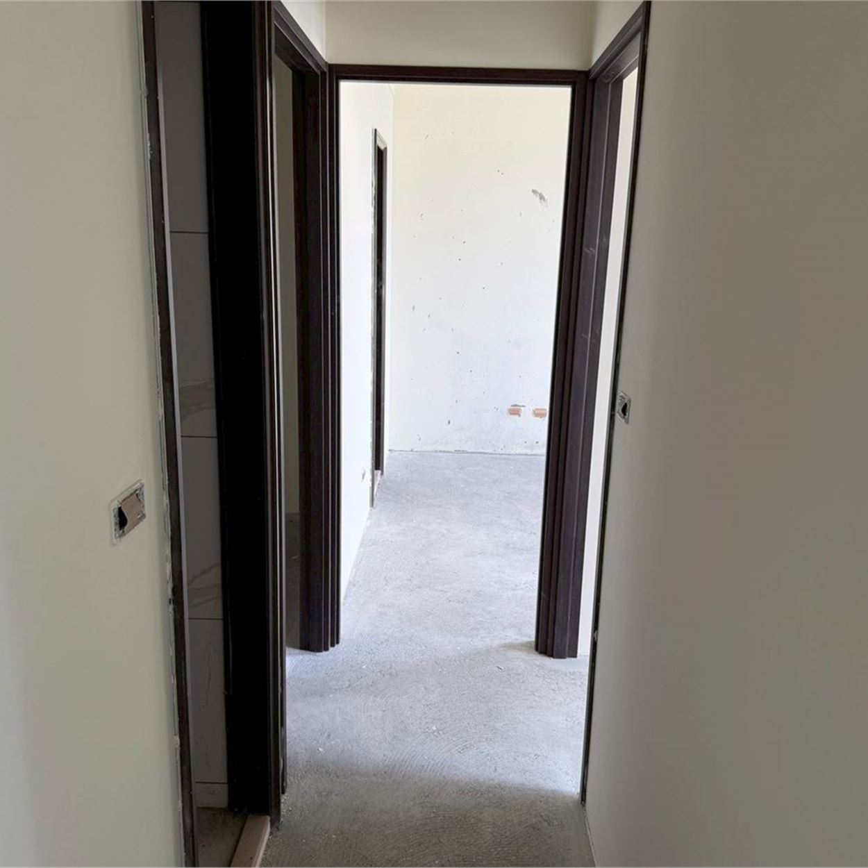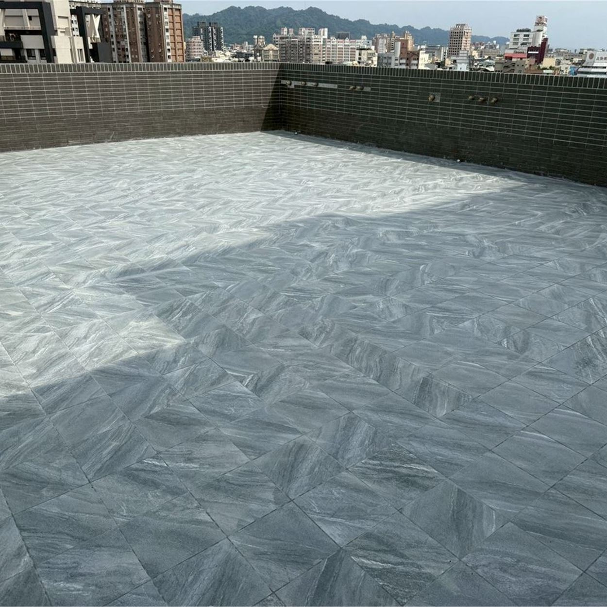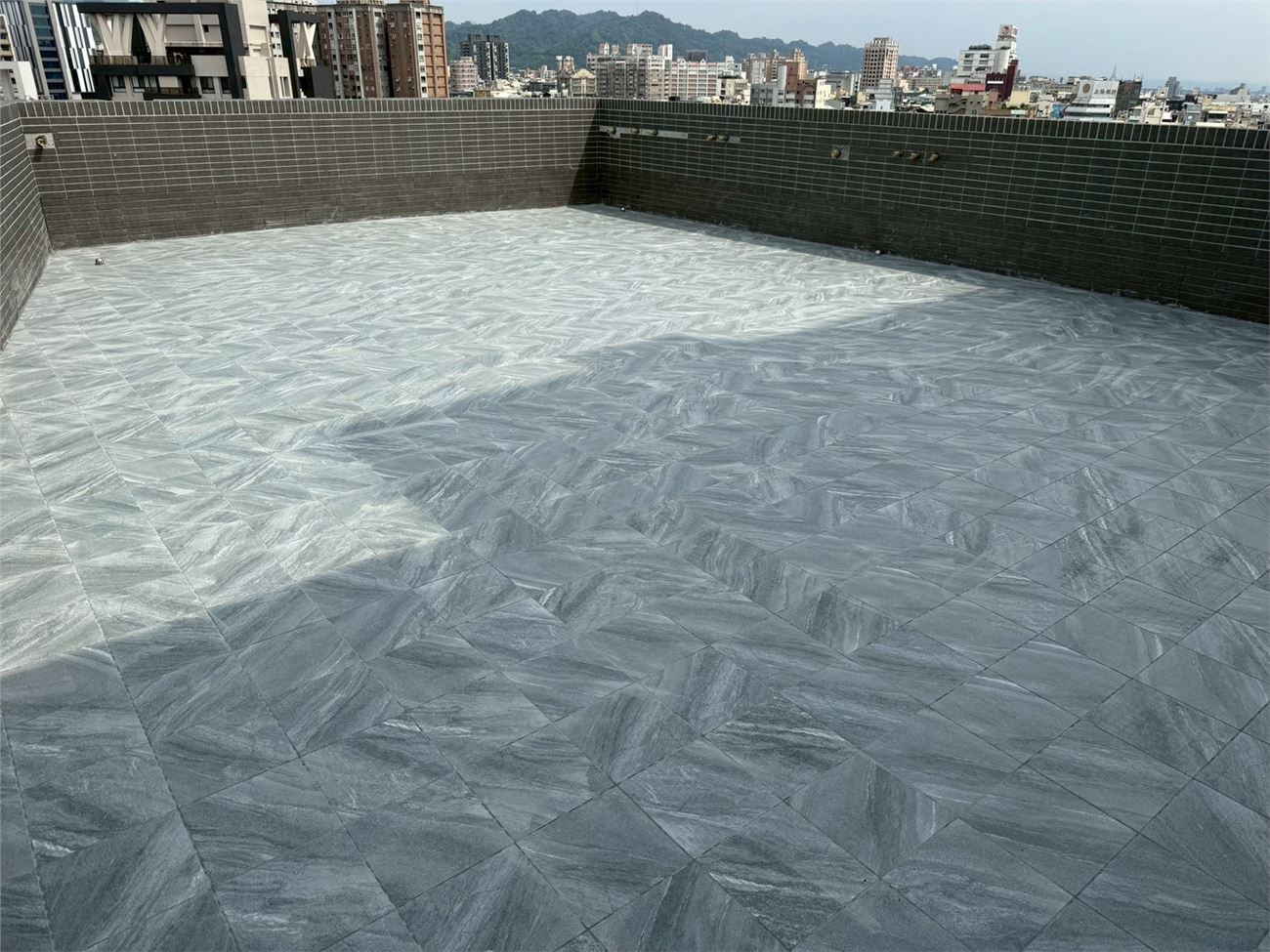 梯廳地磚施作.壁磚完成;露台地磚完成;浴廁安裝完成;落地窗、三合一門玻璃安裝完成;木門框安裝完成;污排水管.進排風完成