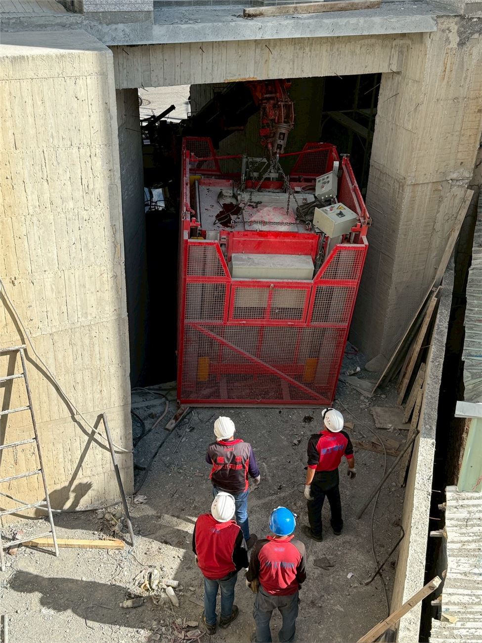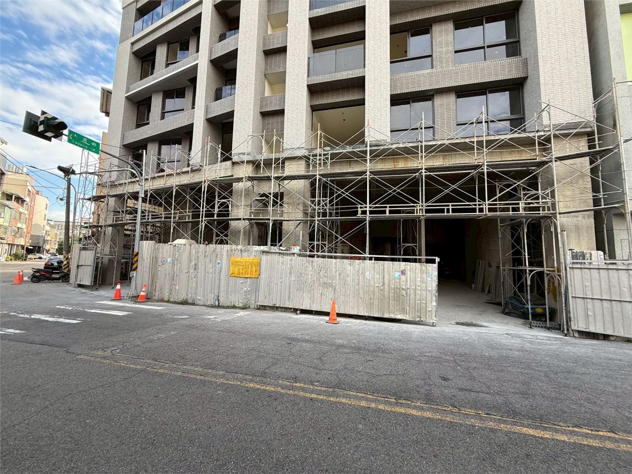 1樓施工架搭設、三角架拆除;11~R樓露台防水施作完成;梯樓梯地磚施作中;1F機械停車施作中; 一般電梯試車完成