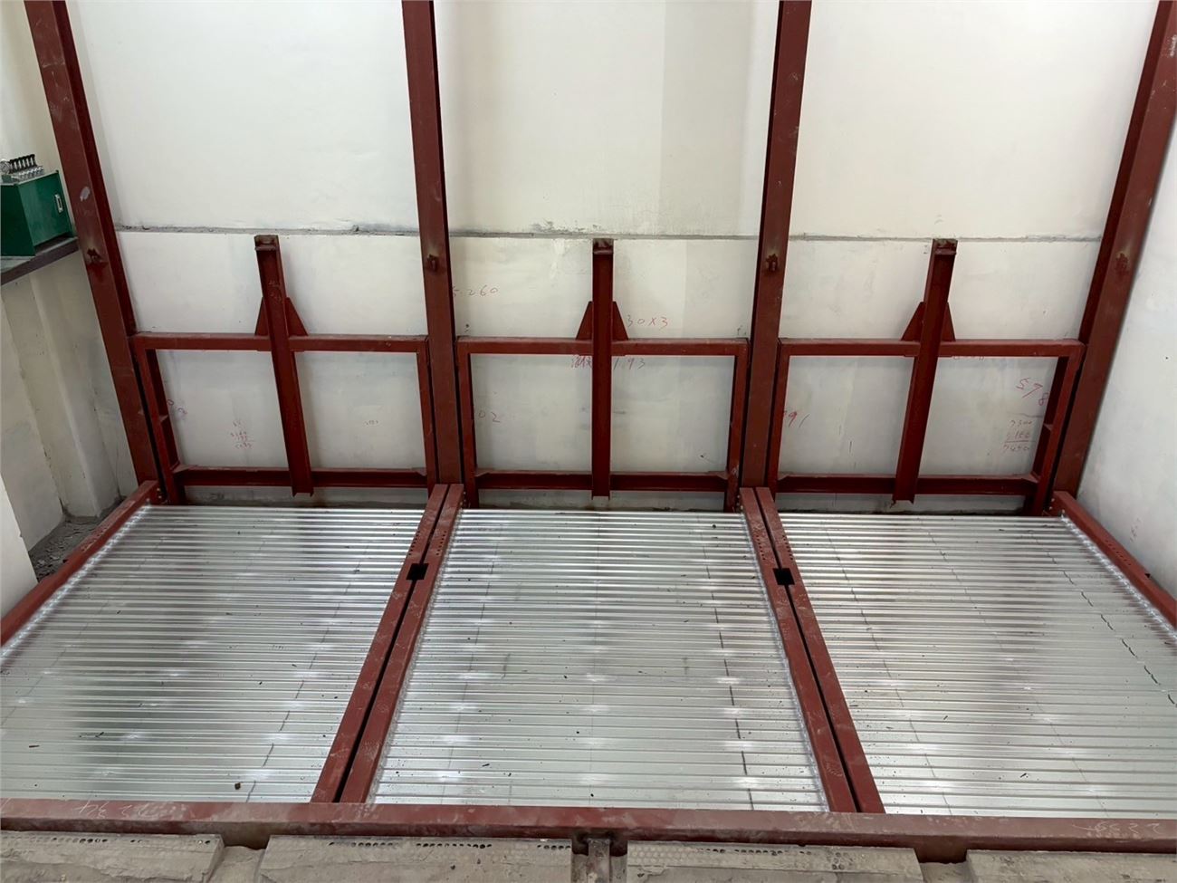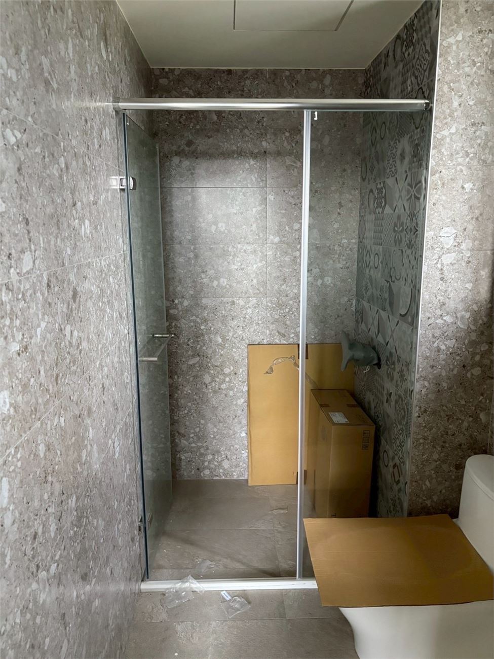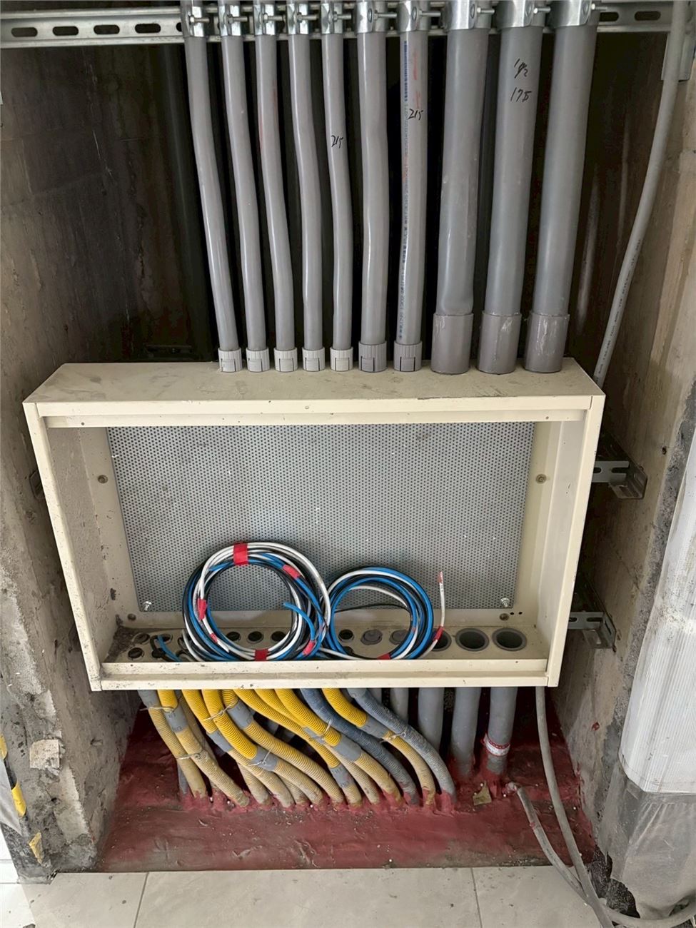 全棟外牆鷹架拆除;兩部電梯交車;全棟門窗框崁縫防水完成;2樓~R樓外牆二丁掛完成;欄杆玻璃安裝完成;2~10樓廁所壁地磚、陽台地磚完成;2F~10F室內輕隔間施作;內牆粉刷油漆;衛浴設施安裝;機械車。